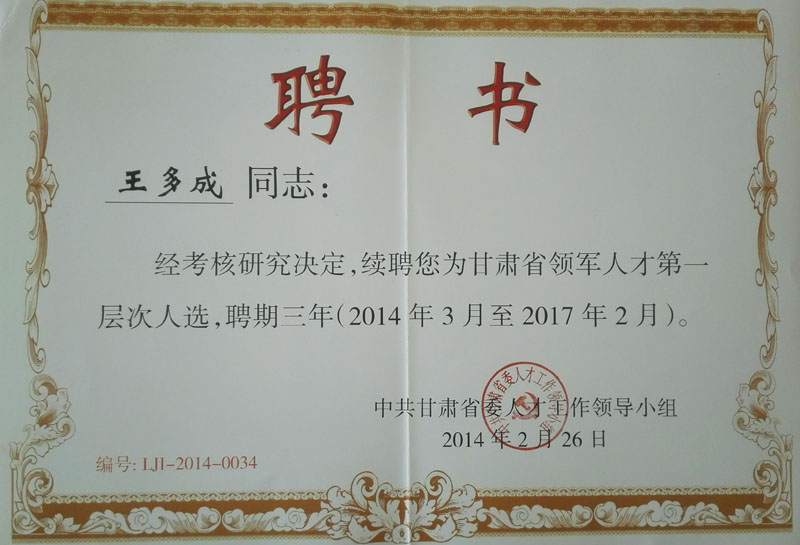 2014-2016年王多成甘州區(qū)專業(yè)技術(shù)…