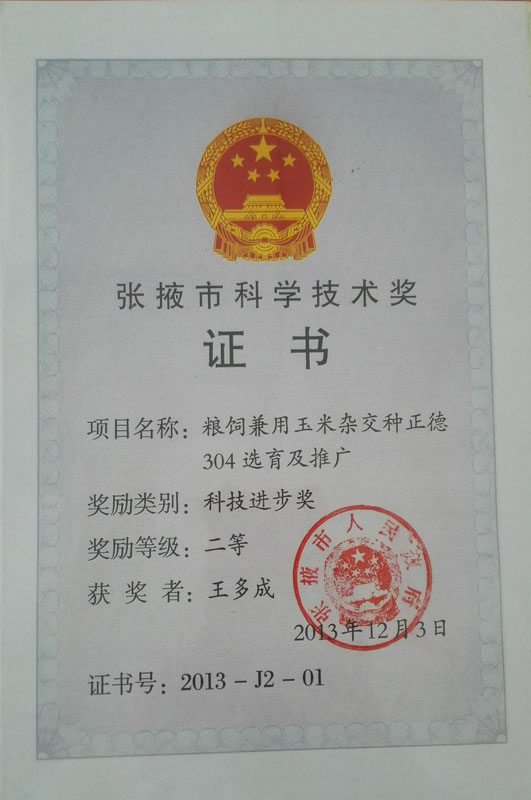 2012年榮獲張掖市科技進步一等獎…